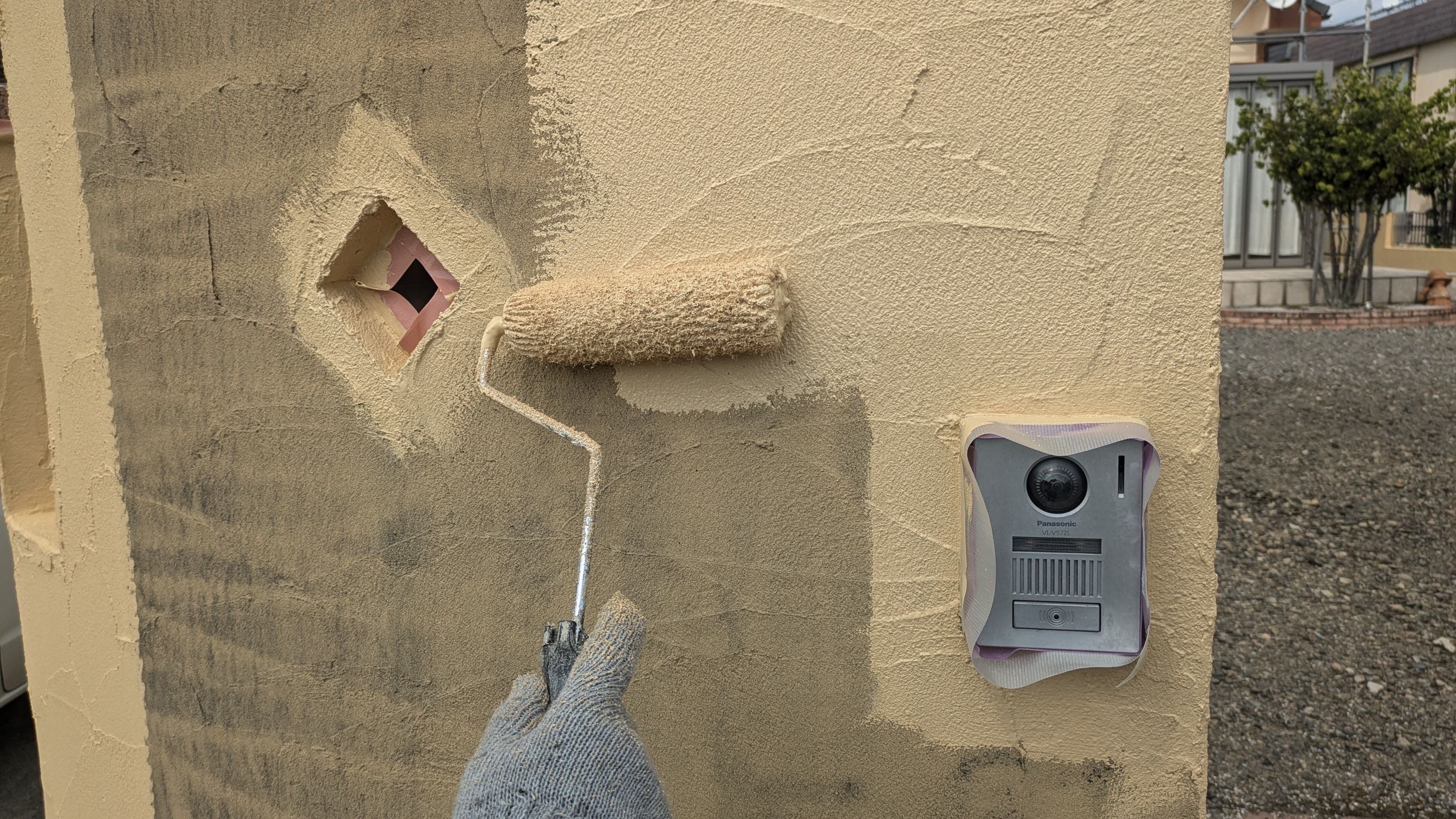 外構塗装の工程写真です。