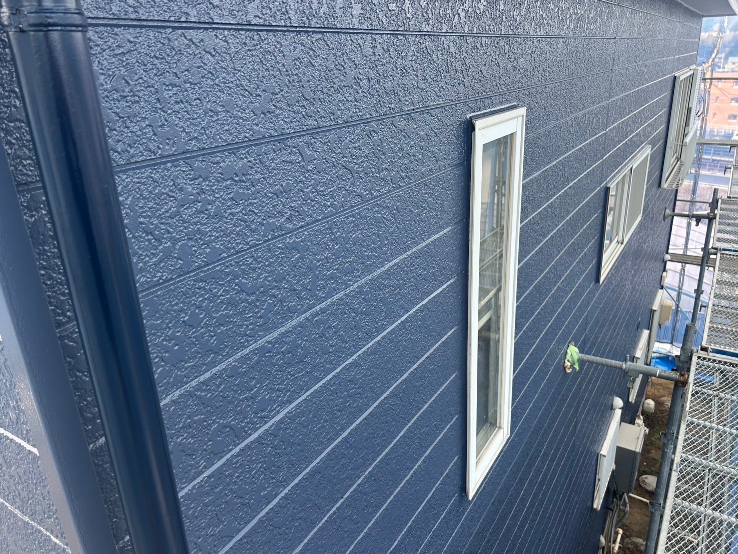 施工ポイント:元々の外壁のお色から黒っぽい色に変えたいとのご希望でしたので、
