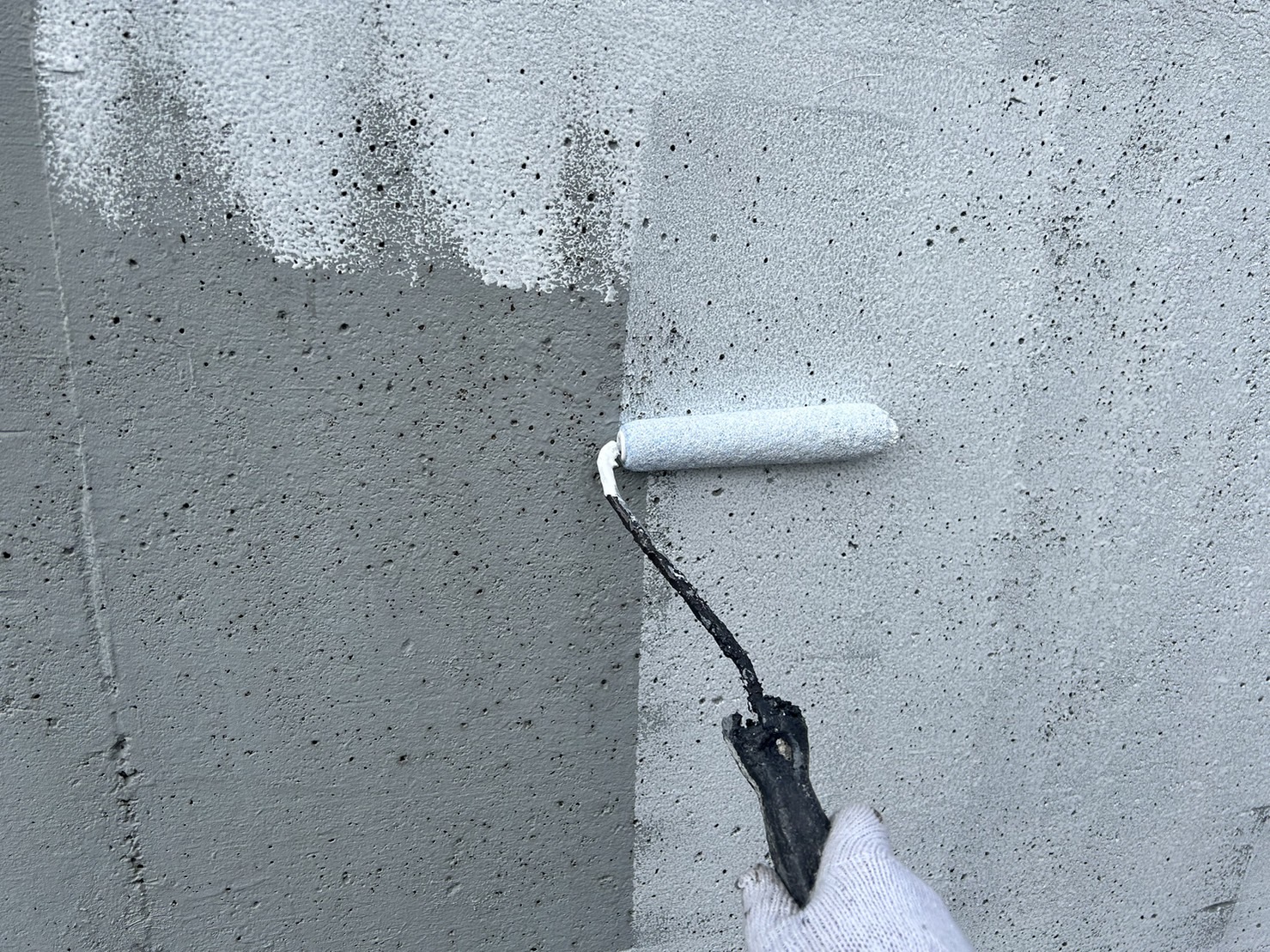 知多市 モノトーンモダンなお家の外構塗装工事の様子を